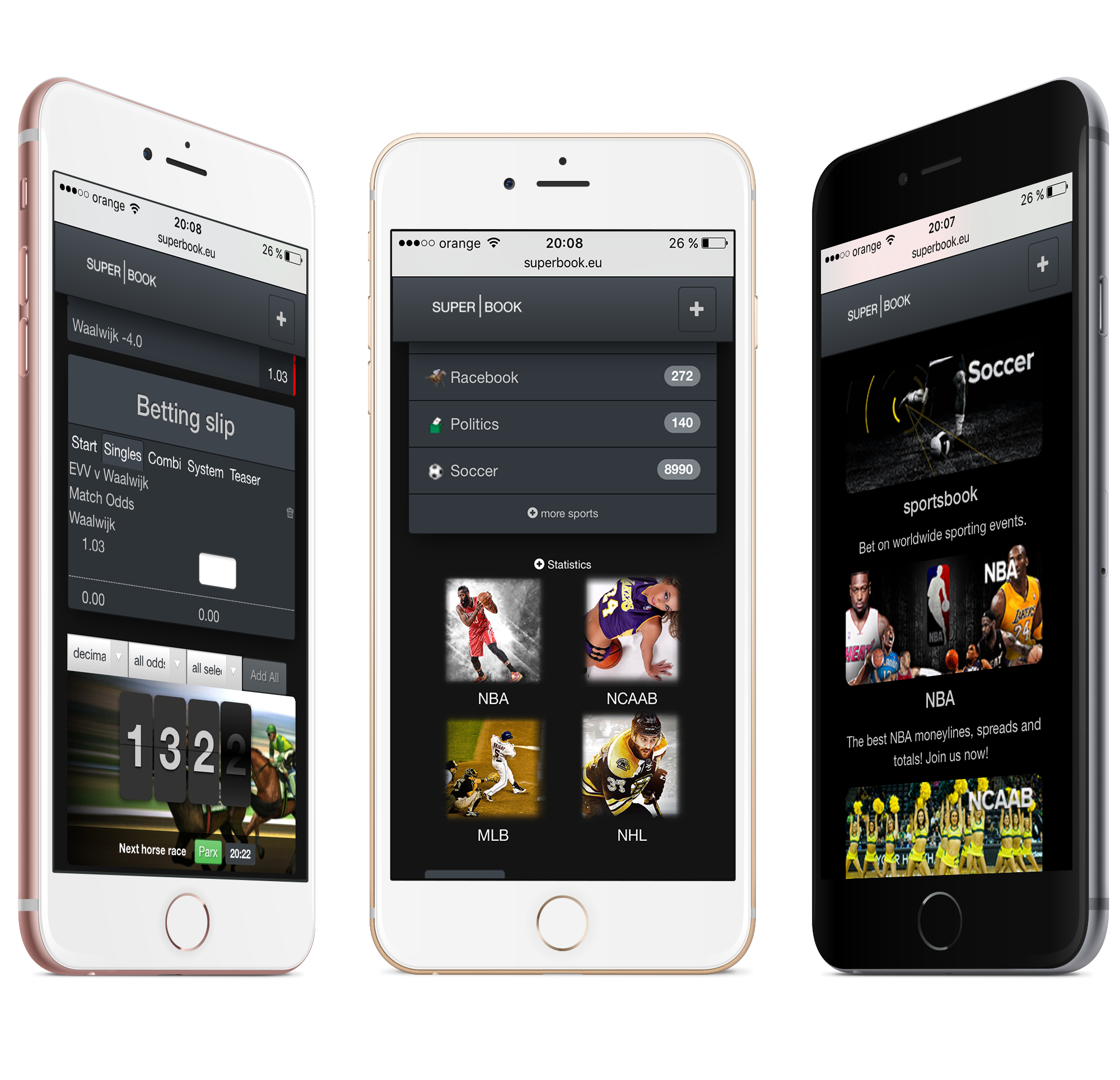 Our Mobile Sportsbook is compatible with all mobile devices running iOS (iPhone, iPad), Android, Windows Mobile, CE, Blackberry and any other mobile platform. The application loads directly from the browser and matches the resolution of the mobile device as well as colors.